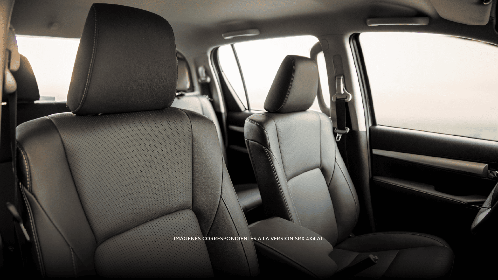 Las versiones SRX cuentan con tapizado de cuero natural y ecológico con función de ventilación en butacas delanteras. Mientras que todas las versiones están equipadas con sensores de estacionamiento delanteros y traseros y aire acondicionado con climatizador automático digital bizona.